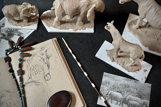 Personal empowerment themed paintings and sculpture through fantasy character-scapes.